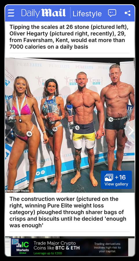 Tom, who weighs more than 18 stone and demolishes about 7,000 calories a day, says he started playing football at the age of five with Whitstable Town FC.